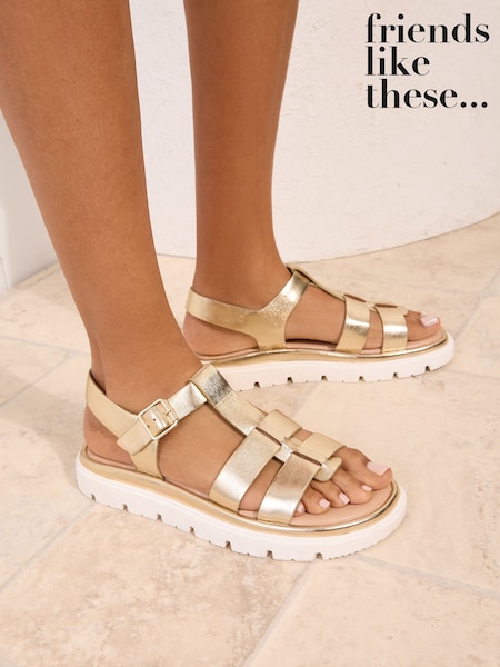 Friends Like These Gold Wide Fit Chunky Fisherman Flat Casual Sandals