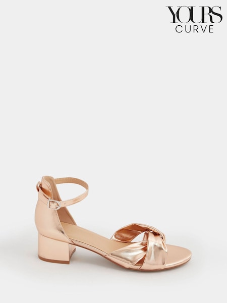 Yours Curve Gold Extra-Wide Fit Twist Front Low Block Heels
