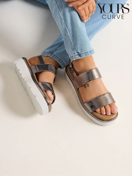 Yours Curve Grey Extra-Wide Fit Faux Leather Padded Wedge Sandals