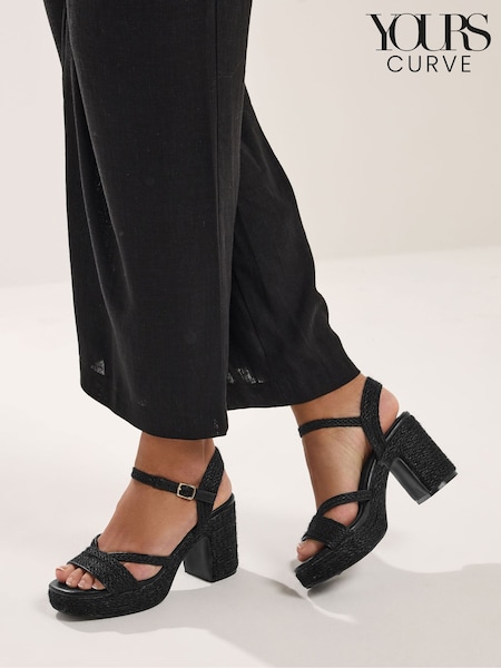 Yours Curve Black Wide Fit Rope Heel Sandals