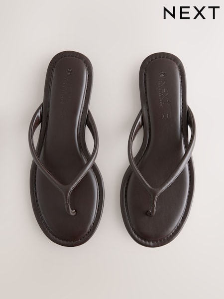 Chocolate Brown Standard/Wide Fit Forever Comfort® Round Toe Leather Thong