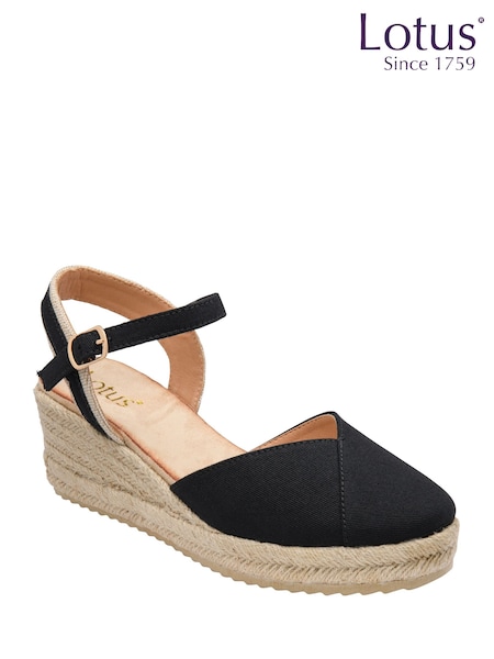 Lipsy Black Wide Fit Black Canvas Peep Toe Heeled Espadrille Wedge Sandals