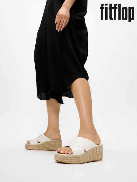 FitFlop White Platfforms Espadrille Leather Wedge Cross Slides