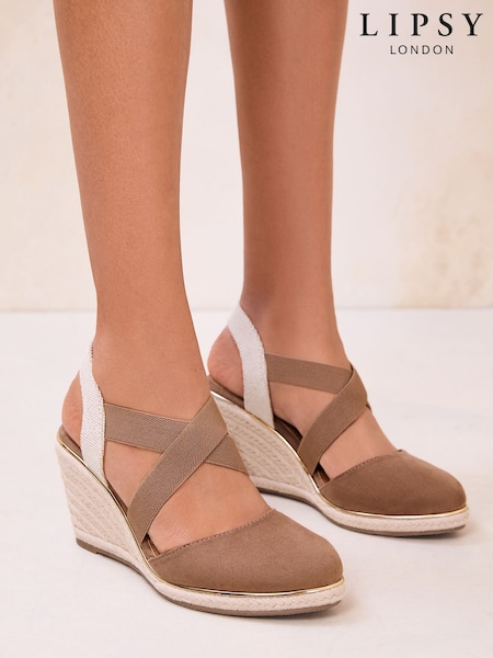 Lipsy Taupe Standard Fit Closed Toe Summer Espadrille Wedge Heels