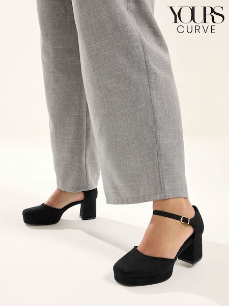 Yours Curve Black Wide Fit Square Toe Occasion Platform Sandals