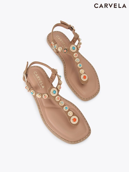 Moda in Pelle Light Brown Nicca Jewel Stone T-Bar Comfort Sandals