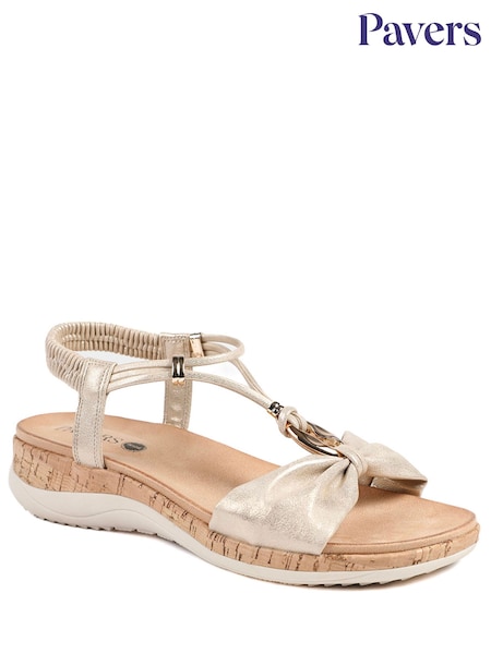 Pavers Soft Gold Wide Fit Wedge Heel Elasticated Sandals