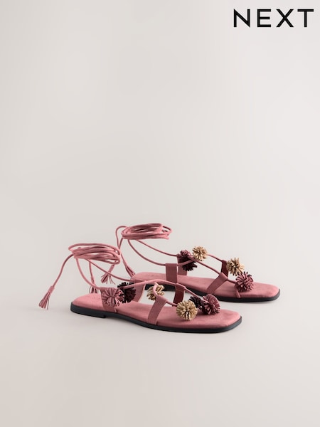 Pink Suede Forever Comfort® Pom Pom Sandals