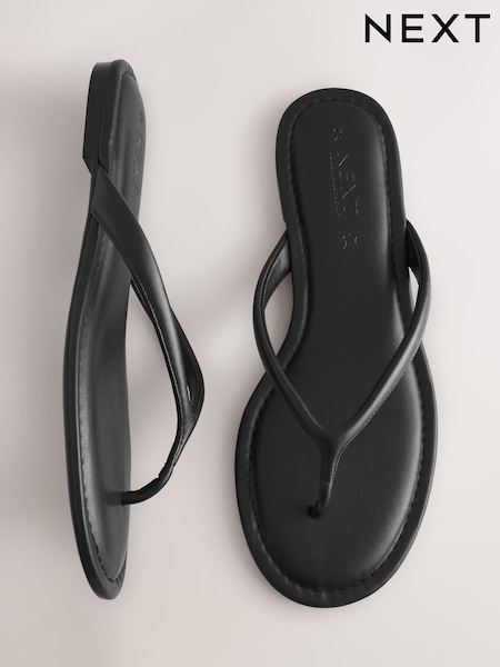 Black Leather Standard/Wide Fit Square Toe Thong Sandals