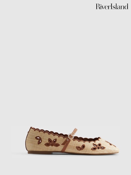 River Island Cream Scallop Edge Broderie Ballet Flat Shoes