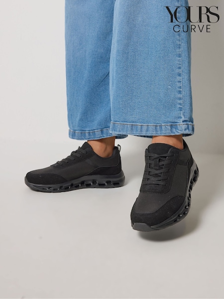 Yours Curve Black Extra-Wide Fit Panelled Runner Trainers