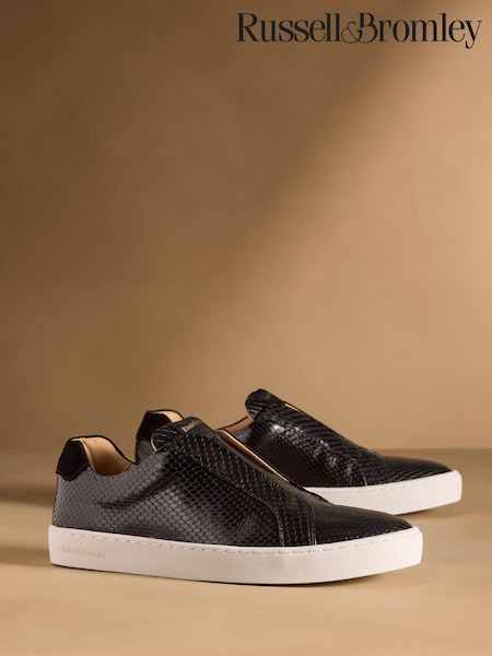 Black Slip On Signature Leather Chunky Wedge Platform Trainers