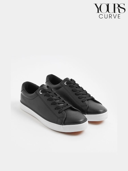 Yours Curve Black Extra Wide Fit Faux Leather Lace-Up Trainers