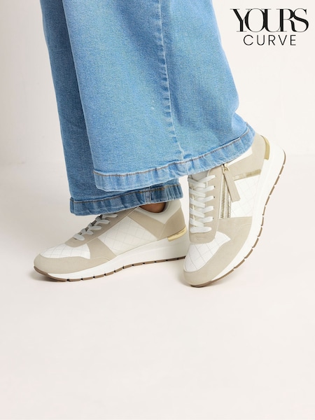 Yours Curve White Wide Fit Quilted Wedge Trainers