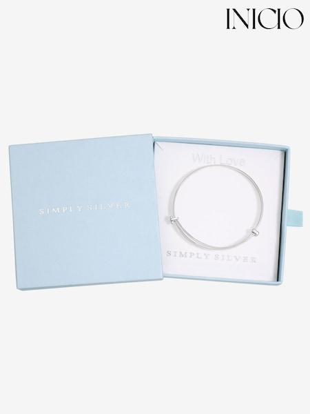 Inicio Silver Tone Christening Heart Bangle - Gift Box
