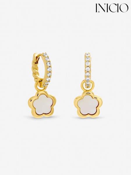 Inicio Gold Tone Mother of Pearl Flower Earrings