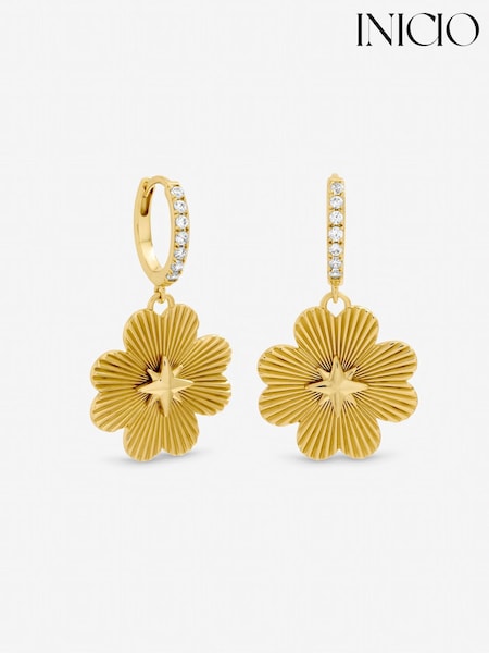 Inicio Gold Tone Diamond Cut Clover Earrings