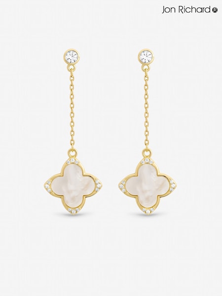 Jon Richard Gold Tone Mother of Pearl Drop Clover Earrings