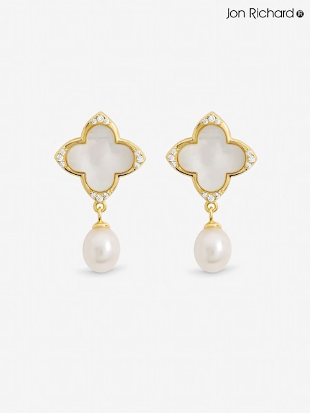 Jon Richard Gold Tone Mother of Pearl and Pearl Clover Earrings