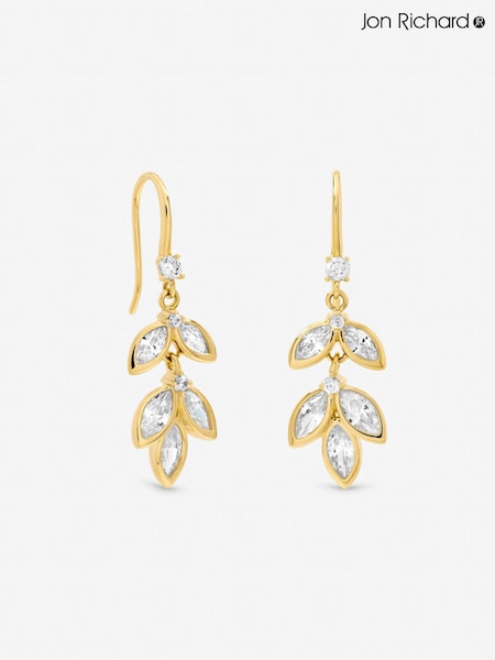 Jon Richard Gold Tone Crystal Leaf Drop Fish Hook Earrings