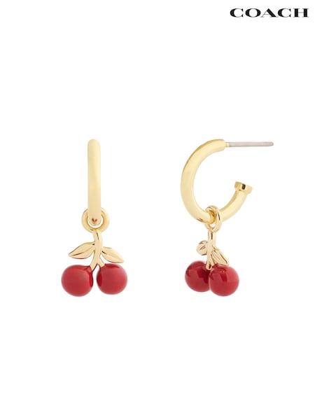 COACH Gold Tone Cherry Charm Huggie Earrings