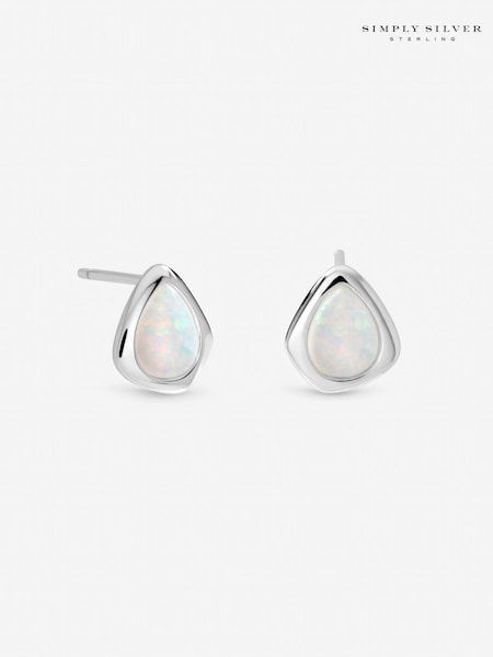 Simply Silver 925 Sterling Silver Opal Polished Stud Earrings