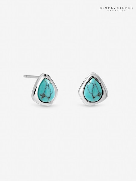 Simply Silver 925 Sterling Silver Turquoise Polished Stud Earrings