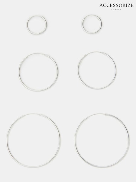 Accessorize Silver Tone Sterling Silver Hoop Earrings 3-Pack