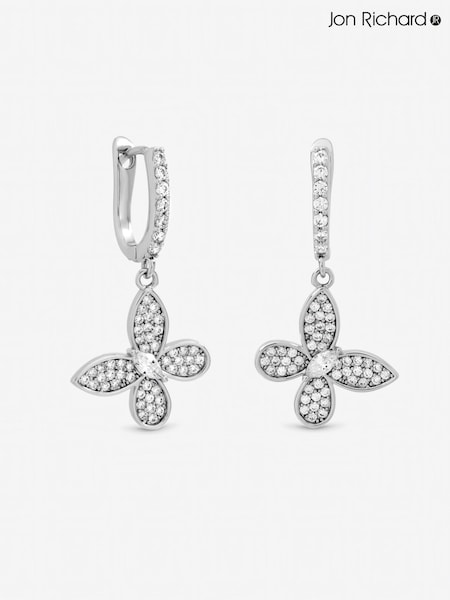 Jon Richard Silver Tone Pave Butterfly Huggie Earrings