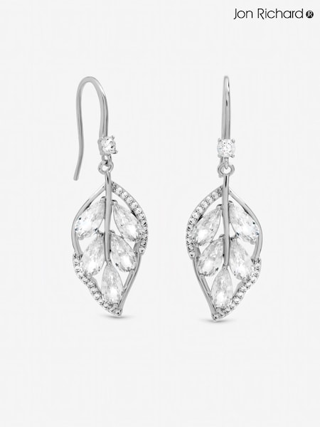 Jon Richard Silver Tone Crytal Leaf Drop Earrings