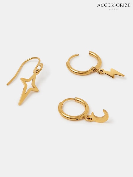 Accessorize Gold Tone Stainless Steel Celestial Hoop Earrings 3-Pack
