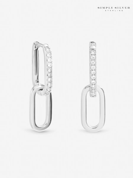 Simply Silver 925 Sterling Silver Polished Double Link Drop Earrings