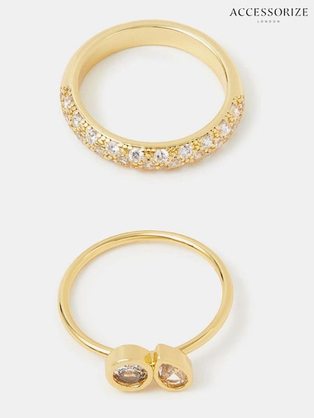 Accessorize Gold Tone 14ct Gold-Plated Mix Diamanté Rings 2-Pack