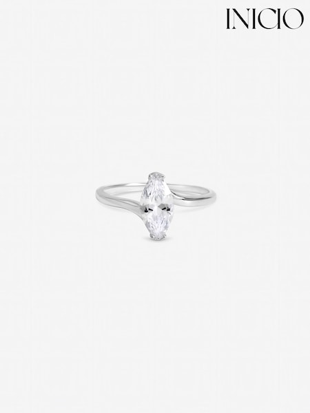 Inicio Sterling Silver Plated Cubic Zirconia Navette Engagement Ring Gift Pouch