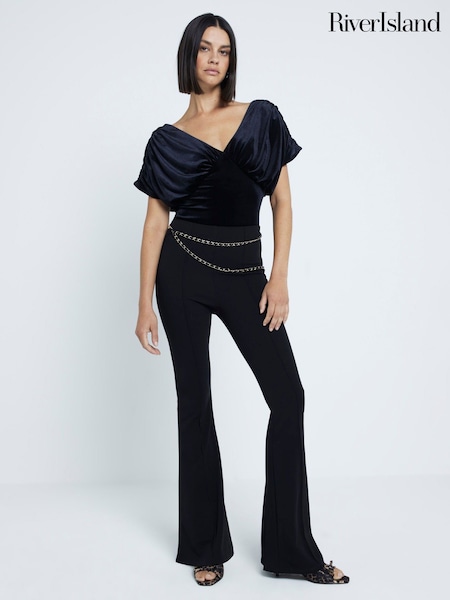 River Island Black Long Sleeve Square Neck Nylon Bodies 2 Pack