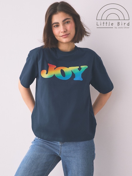 Little Bird by Jools Oliver Navy Happy Short Sleeve Slogan T-Shirt