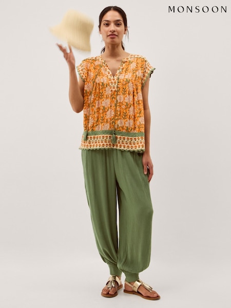 Monsoon Green Reese Shirred Harem Trousers