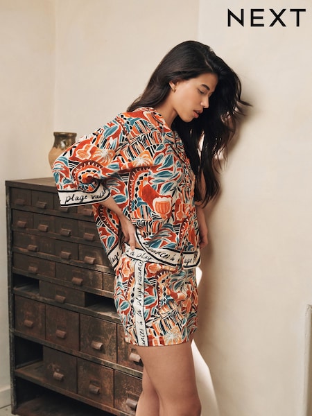 Orange Palms Viscose/Linen Blend Button Through Pyjamas