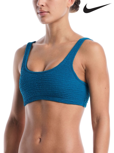 Nike Blue Shoreline Pucker Textured Bralette Bikini Top