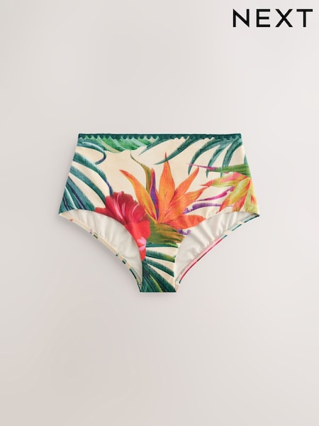 Red Tropical High Waist Midi Bikini Bottoms