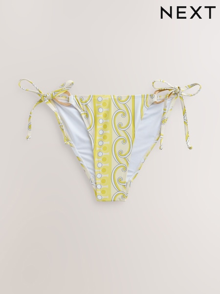 White/Yellow Geometric Hardware Tie Side Bikini Bottoms