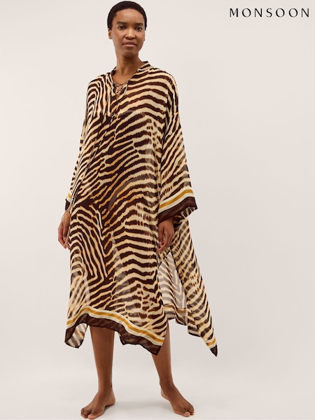 Monsoon Natural Clarissa Animal Print Midi Kaftan