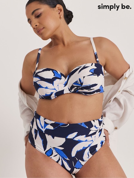 Simply Be Blue/White Magisculpt Fold Over Classic Bikini Breif