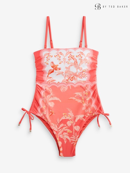 B by Ted Baker Bandeau Coral Pink Swimsuit with Adjustable Ruching and Tummy Control