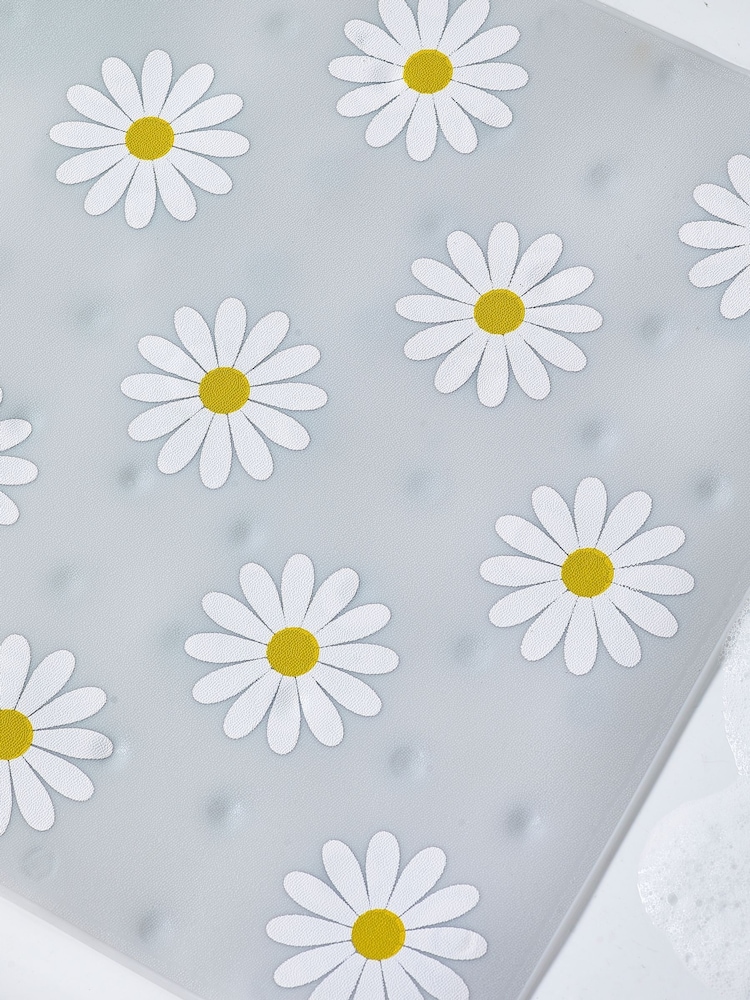 Add both practicality and style your bath with this pretty daisy plastic bath mat with suction pads on the reverse, allowing you to securely grip the mat to the bath/shower which reduces the risk of slipping. Not suitable for use on textured and non-slip baths or shower trays. Ensure the bath or shower tray is clean and wet prior to fitting the mat. After unrolling and allowing the mat to flatten naturally, position the mat in the bath or shower tray. Press down firmly and ensure the mat is secure before stepping onto it. Do not use with bath oils or other additives that may affect the performance. When stepping onto the mat, tread carefully onto the centre. Never leave small children unattended in the bath or shower. After use rinse the mat thoroughly and allow it to dry naturally. Wash the mat periodically by hand in warm soapy water. Length 70cm Width 40cm Sponge clean only. 100% PVC.
